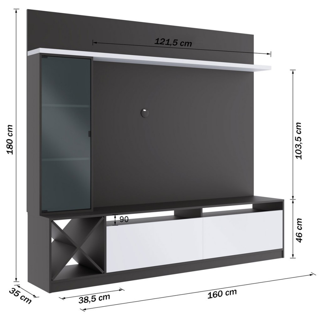 Descrição: O(a) Rack com Painel para TV Até 50 Polegadas 3 Portas Preto 2021 - Quiditá Móveis é produzido em MDP na escala de brilho Semi-Brilho, e possui um grau de dificuldade de montagem: Médio. Seu revestimento/acabamento é: Finish Foil. Infelizmente a Loja não oferece serviço de montagem, deixamos essa informação bem clara em todas as nossas páginas de produto. Onde especificamos que os móveis chegarão desmontados, e que a montagem fica por conta do cliente. Como não oferecemos esse serviço não embutimos o mesmo no preço dos produtos, ou seja, maior economia para você! Todos os nossos móveis também acompanham o manual de montagem, e caso você queira, pode realizar a montagem você mesmo, sempre especificamos os graus de montagem dos produtos. Nos casos de grau baixo e médio, com pouco ou nenhum conhecimento, você mesmo pode efetuar a montagem, e fazer essa economia. Apenas nos graus de montagem alto, recomendamos a contratação de um montador com experiência, visto que são montagens mais complicadas. A montagem é feita com Parafuso, cavilhas e minifix.. Este móvel é indicado para que seja utilizado no(a) Sala de Estar, dando um toque especial no cômodo de sua casa. Para que você mantenha seu produto sempre em ótimo estado, recomendamos que use apenas um pano seco ou levemente umedecido, sem o uso de quaisquer produtos abrasivos. A Loja garante aos clientes, 90 dias de garantia nos produtos, porém, recomendamos que entre em contato com o fornecedor/marca do produto, pois o mesmo(a), pode garantir um prazo maior de garantia. Lembrando ainda que: quaisquer objetos decorativos que aparecem nas imagens, não acompanham o produto. Características: - Peso Suportado nos Nichos: 5 - Como os Móveis Chegarão na Minha Casa: Desmontados, em caixas, acompanhados de todas as peças, ferragens e manuais para montagem. Possui uma porta de vidro. - É frágil?: Sim - Possui Borda de PVC nas Bordas?: Não - Espessura do Tampo (mm): 15 - Quantidade de Pés/Sapatas: 6 - Material do Puxador: Plástico - Pés com regulagem de altura?: Não - Peso Suportado nas Prateleiras (kg): 7 - Possui Vidro?: Sim - Material das Corrediças: Não possui - Medidas do Rack (A x L x P): 46 x 160 x 35 cm - Acompanha LED: Não - Quantidade de Puxadores: 1 - Material do Tampo: MDP - Peso Suportado no Tampo (Kg): 7 - Observação: Objetos decorativos que aparecem na imagem não acompanham o produto. - Necessita de Montagem: Sim - Sistema de Montagem: Parafuso, cavilhas e minifix. - Possui Espaço Passa Fios: Sim - Necessita de Fixação na Parede?: Sim - Indicação de Uso: Sala de Estar - Possui Sapatas?: Sim - Acompanha Suporte para TV: Não - Medidas do Painel (A x L x P): 134 x 160 x 35 cm - Material das Dobradiças: Metálica e Pistão a Gás - Possui Rodízios?: Não - Garantia (dias): 90 - Grau de Dificuldade da Montagem: Médio - Recomendação de Manutenção: Para limpeza de seu móvel use uma flanela seca, não utilizar produtos abrasivos. - Quantidade de Pistão: 2 - Revestimento /Acabamento: Finish Foil - Material das Dobradiças: Metálica e Pistão a Gás - Quantidade de Prateleiras: 3 - Possui Espelho?: Não - Possui Espelho?: Não - Quantidade de Portas: 3 - Quantidade de Nichos: 4 - Material do Puxador: Plástico - Possui Gavetas?: Não - Possui Portas?: Não - Possui Puxadores?: Não - Peso Suportado nas Prateleiras:: 7 Kg - Possui Prateleiras?: Não - Peso Suportado no Painel: Até 55 Kg - Quantidade de Prateleiras: 3 - Material da Estrutura: MDP - Escala de Brilho: Semi-Brilho - Ideal para TVs até: 50