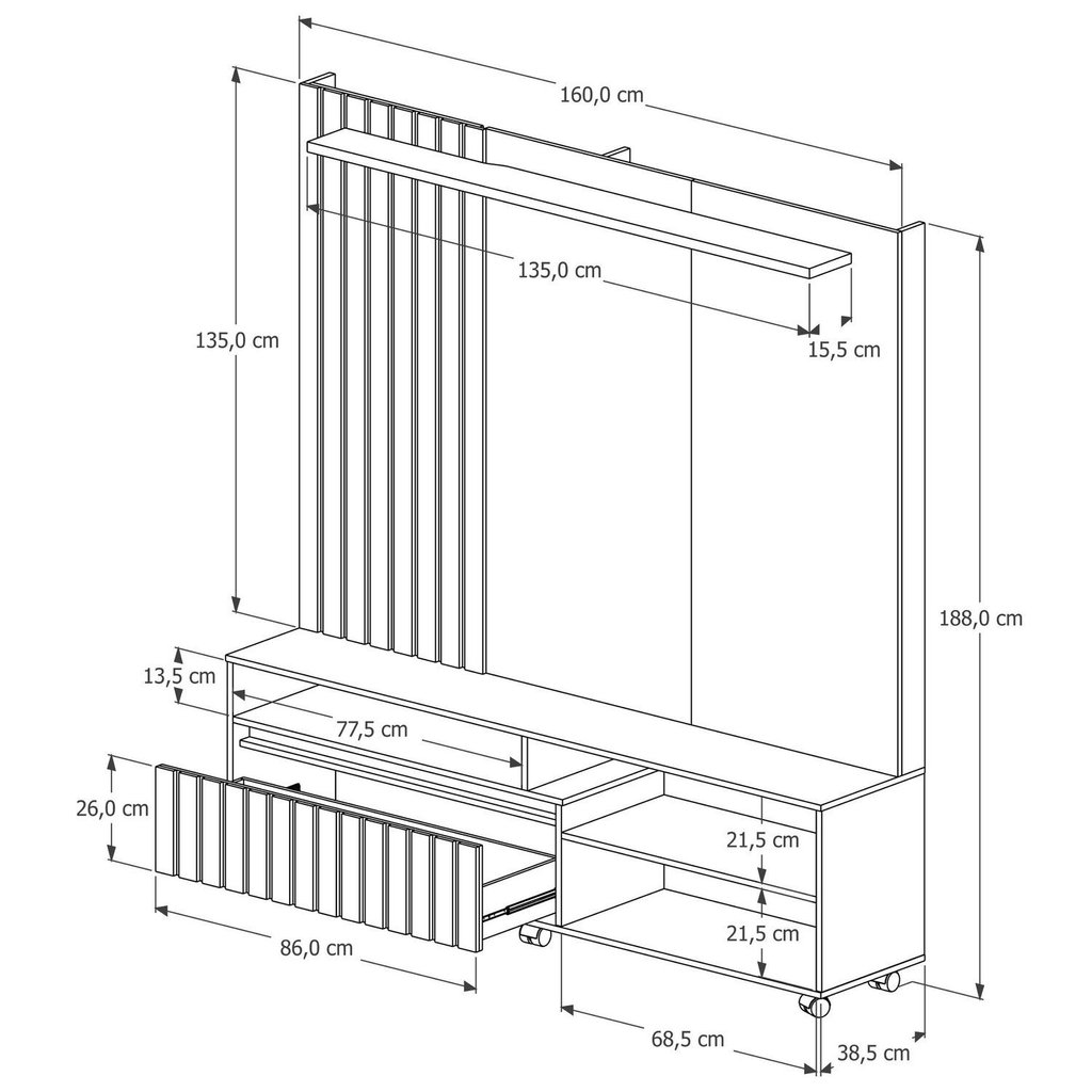 Estante para TV até 65 Polegadas Home Theater Ripado com Rodízios Havana