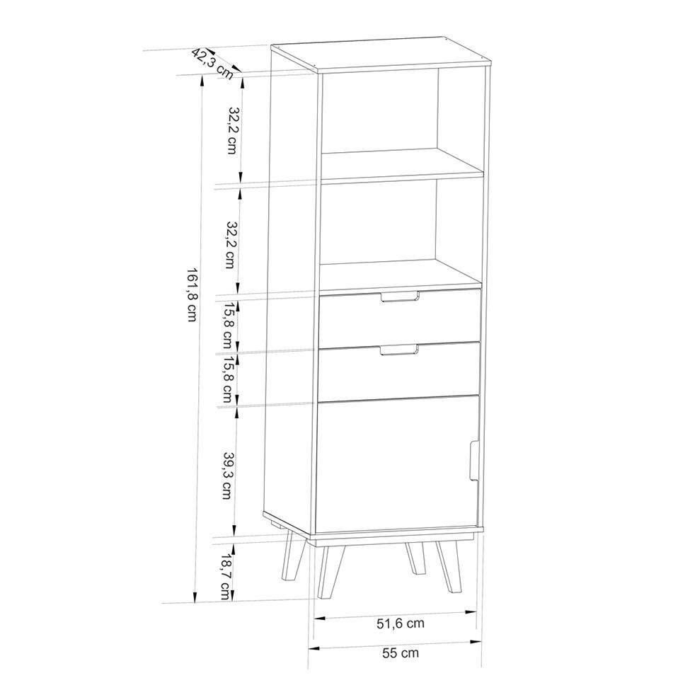 Por que a Estante Paris?Organização e qualidade são duas características básicas da Estante Paris. Produzida em MDF e com acabamento fosco, este produto possui duas prateleiras, duas gavetas e um compartimento com porta para você colocar seus livros e objetos de decoração. Se design minimalista dá ao ambiente um visual muito mais moderno. Legal, né? Cor: Branco Garantia em Meses: 3 Cores do Produto: Branco Instruções/Cuidados: Limpar com pano levemente umedecido com água Conteúdo da Embalagem: 1 Estante - Entregue em: 1 Volume Modelo: Paris Número de Volumes: 1 Material: Produto produzido em MDF 15 mm; Pés em MDF 25 mm; Corrediças metálicas; Puxadores embutidos; Pintura UV com acabamento fosco Material para Filtro: MDF Descrição do Tamanho: Altura: 161,8 cm | Largura: 55 cm | Profundidade: 42,3 cm Altura do Produto (cm): 162 Largura do Produto (cm): 55 Comprimento do Produto (cm): 42 Peso do Produto (Kg): 31.5 Produto precisa de Montagem?: Sim, sugerimos a contratação do nosso serviço de montagem (para os CEPs em que o serviço está disponível) ou de algum profissional experiente de sua preferência Número de portas: 1 Número de gavetas: 2 Título do Vídeo: Estante Vintage Paris Tipo de pé: Fixo Material da dobradiça/trilho da porta: Metal Material da estrutura: MDF Material do puxador: Não Possui Necessita fixação na parede: Não Possui espelho/vidro: Não Tipo da Corrediça da gaveta: Telescópica Tipo de Porta: Basculante Material dos pés: MDP PROFUNDIDADE x LARGURA x ALTURA: 42 x 55 x 162 Fornecedor: OLIVAR MOVEIS LTDA Baterias são necessárias?: Não Certificação de teste externa: Não Componentes incluídos: Não Número da peça: Não Produto: Estante Inclui manual de montagem: Sim
