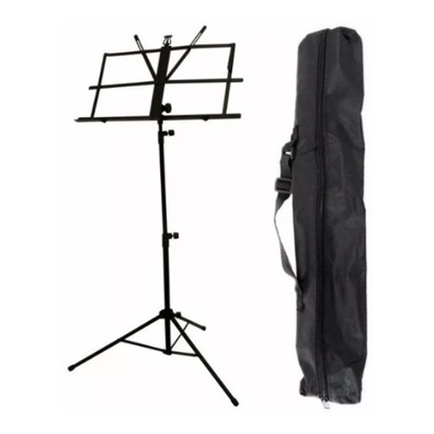 Somos a Eletromusic Loja Especializada a mais de 10 anos no Mercado. Qual e o nosso diferencial? Buscamos sempre oferecer qualidade com excelencia por isso todos os nossos produtos sao de Fornecedores Nacionais com rigoroso controle de qualidade, possuem nota fiscal eletronica e garantia de fabrica. Voce e bem vindo para fazer parte da nossa historia. Especificacoes tecnicas: - Estante de partitura metalica preta. - Pedestal retratil. - Suporte dobravel. - Regulagem telescopica com 2 estagios. - Pes emborrachados. - Fixacao de folhas. - Montagem simples e facil. - Inclui capa com alca regulavel. - Medida sem capa: 53 x 9 x 5 cm - Medida com capa: 60 x 10 x 6 cm - Altura maxima: 135 cm - Altura minima: 65 cm - Book Plate: 28 x 46 cm