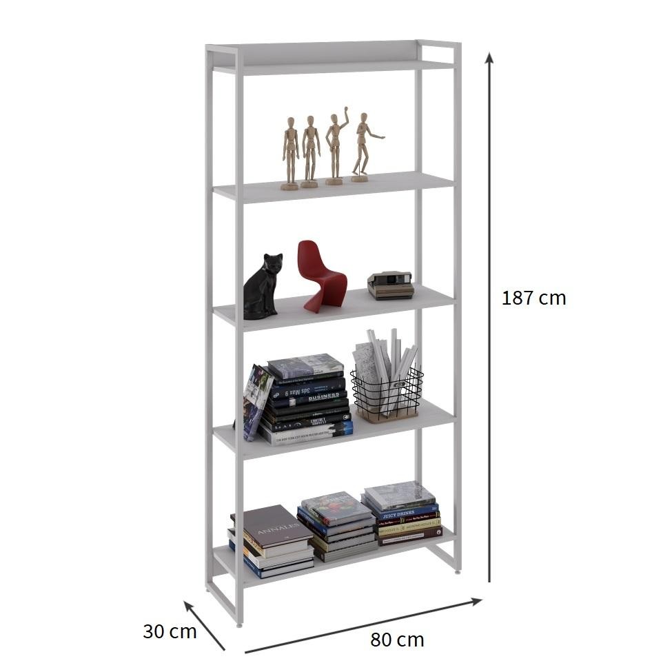 Que tal a Estante Nanda?A Estante Nanda é a adição perfeita para quem busca funcionalidade e beleza na decoração de casa. Com amplo espaço para livros, vasinhos de plantas ou enfeites diversos, ela está sempre pronta para organizar o ambiente, enquanto também deixa suas obras literárias favoritas fáceis de alcançar para aquele momento de lazer. A cor versátil e design com pegada industrial dão um toque de bom gosto e charme para qualquer cantinho que decidir posicioná-la - seja na sala de estar, no escritório ou no quarto, essa peça complementa a sua rotina de forma muito especial, trazendo praticidade e estilo para o lar-style. Cor: Branco Garantia em Meses: 6 Cores do Produto: Branco Instruções/Cuidados: Para a limpeza, utilize flanela seca ou pano macio levemente umedecido em água. Utilize um pano seco em seguida. Evite contato com produtos químicos (solventes, thinner, acetona, etc) e não utilize nenhum tipo de esponja de aço. Conteúdo da Embalagem: 1 Estante - Entregue em: 1 Volume Modelo: Nanda Número de Volumes: 1 Material: A Estante Nanda possui estrutura em aço, prateleiras em MDP BP 15mm e acabamento fosco Material para Filtro: Aço Descrição do Tamanho: Altura: 187 cm | Largura: 80 cm | Profundidade: 30 cm Altura do Produto (cm): 187 Largura do Produto (cm): 80 Comprimento do Produto (cm): 30 Peso do Produto (Kg): 16 Produto precisa de Montagem?: Sim, sugerimos a contratação do nosso serviço de montagem (para os CEPs em que o serviço está disponível) ou de algum profissional experiente de sua preferência Número de portas: Sem portas Número de gavetas: Sem gavetas Tipo de pé: Fixo Número de Prateleiras: 5 Tendências: Boho Escandinavo Material da estrutura: Aço Necessita fixação na parede: Não Material dos pés: Aço PROFUNDIDADE x LARGURA x ALTURA: 30 x 80 x 187 Fornecedor: Faber Industria e Comercio de Moveis Ltda Baterias são necessárias?: Não Certificação de teste externa: Não Componentes incluídos: Não Número da peça: Não Produto: Estante Inclui manual de montagem: Sim