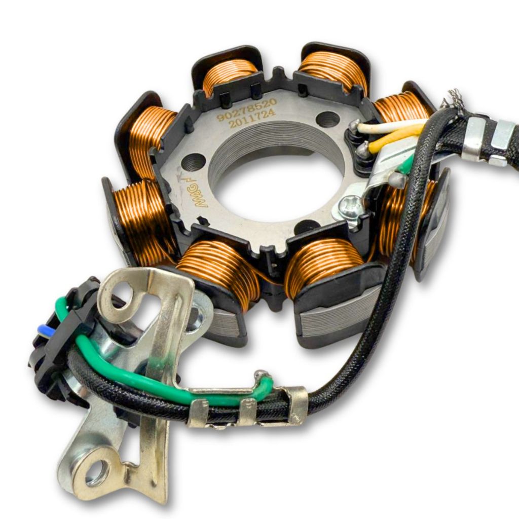 Estator do Magneto Compatível com: HONDA NXR 125 ES BROS (2003-2005) NXR 125 KS BROS (2003-2005) NXR 150 ES BROS (2003-2005) NXR 150 ESD BROS (2003-2005) NXR 150 KS BROS (2003-2005) Conteúdo da Embalagem: - 01 Estator do Magneto - Magnetron Código original: 31120-KRE-901 O Estator tem a função de gerar energia para o sistema de carga de bateria e iluminação (painel, farol, lanterna traseira, piscas dianteiros e traseiros). O estator é a parte fixa do gerador elétrico da motocicleta. Especificações Técnicas: - Equivalente a Peça Original - Ideal para Reposição - Alta Resistência e Durabilidade - Tratamentos contra a oxidação - Confeccionado com a melhor matéria-prima - Melhor condutibilidade e maior vida útil da peça - Material leve e resistente - Excelente qualidade e acabamento Características: - Produto desenvolvido com os mesmos parâmetros e encaixes do original, substituindo o mesmo sem nenhum problema ou adaptação. - Testado e aprovado dentro das normas de segurança. Importante: - Para a instalação do produto corretamente, leve ao mecânico de sua confiança! - Não nos responsabilizamos pelo uso indevido do produto.