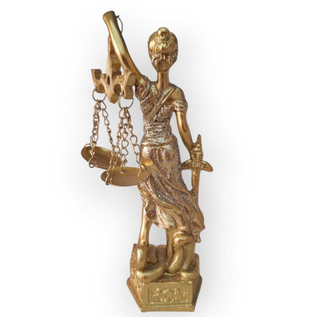 Adicione sofisticação e significado ao seu ambiente com a Estátua Dama da Justiça. Símbolo de equilíbrio, imparcialidade e força, esta peça é perfeita para: Escritórios de advocacia Salas de estudos jurídicos Decoração de ambientes corporativos e jurídicos Fabricada em resina com acabamento dourado, possui detalhes refinados que transmitem elegância e profissionalismo. Especificações: Material: Resina e Metal Cor: Dourado 📏 Altura: 15 cm 📏 Base: 6cm Ideal para presentes a advogados, estudantes de direito e juízes Destaques: Design clássico e imponente Símbolo de justiça e ética profissional Perfeito para quem busca um ambiente sofisticado e inspirador