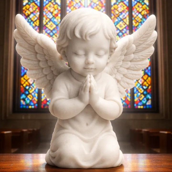 Estátua de Anjo Querubim Decorativo em PLA – Escultura Religiosa 3D para Oração, Presente Espiritual e Decoração Cristã