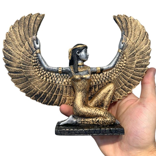 Estatua Deusa Isis Asa Aberta Dourada ou Colorida Egípcio Faraó Arquétipo