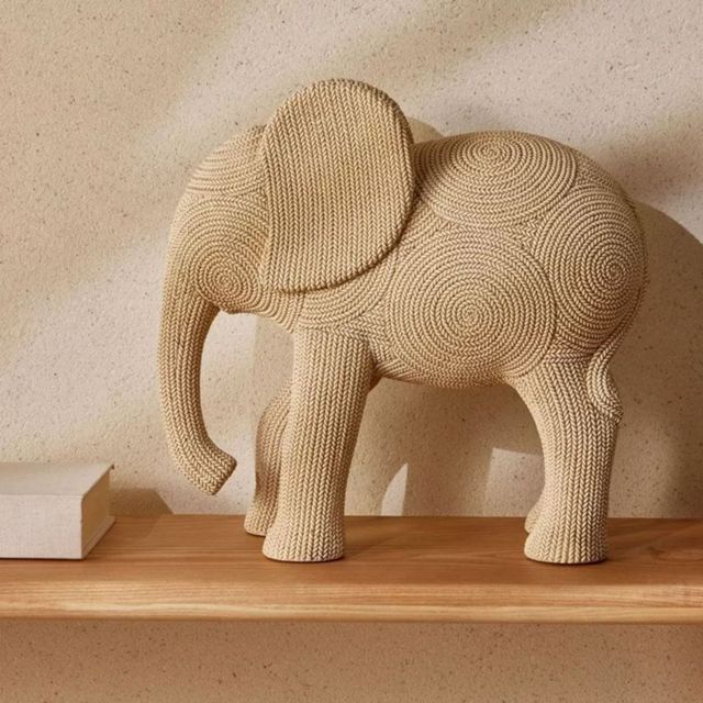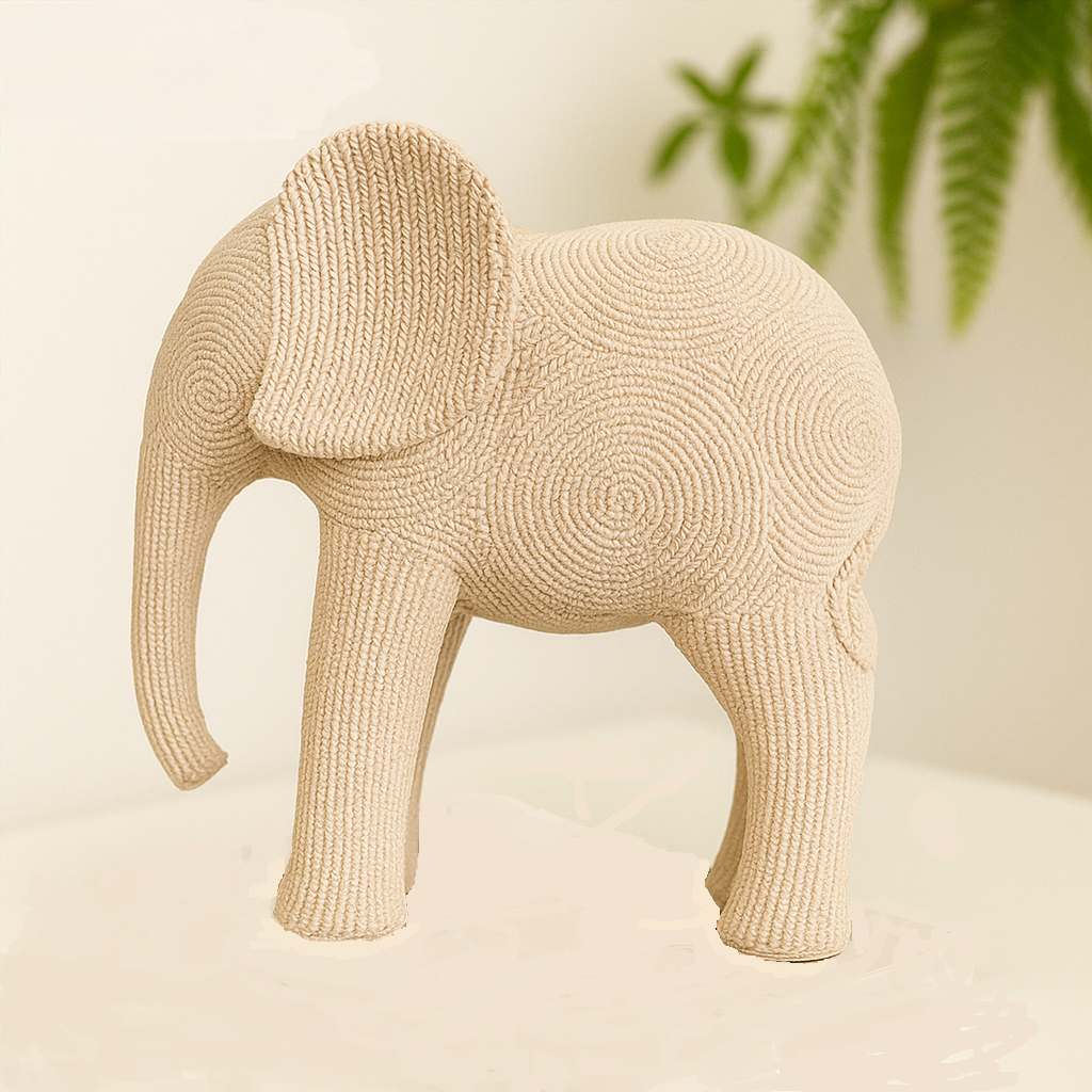Estátua Elefante Crochê Médio Estatueta Escultura Decoração Peça feita a Mão Artigo de Luxo 22 Cm