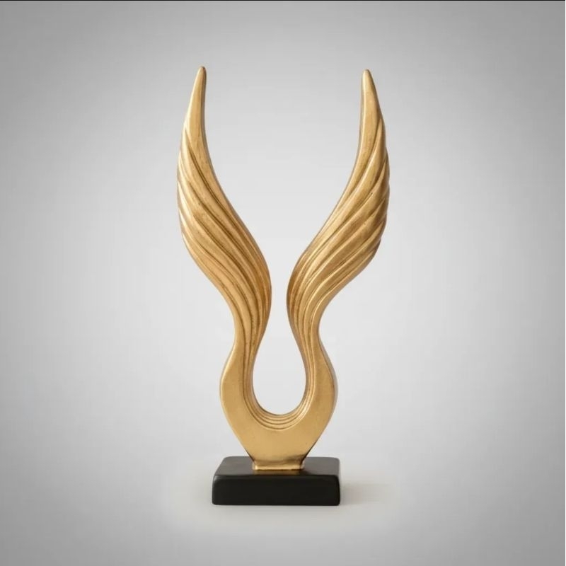 A peça "Asas de Anjo" é um artefato de design minimalista e impactante. Caracteriza-se por uma estrutura bífida simétrica, executada em acabamento dourado sobre uma base preta contrastante. A essência do design captura o movimento e a energia da ascensão, sendo um poderoso símbolo de conquista e superação. Ornamento decorativo em renina de alta qualidade, pintura automotiva impermeável, um item versátil ideal para decoração de ambientes internos e externos. Por favor se atentar as medidas descritas. Medidas Comprimento: 6,75 cm Largura: 4 cm Altura: 14,5 cm Material: Resina Pintura Automotiva
