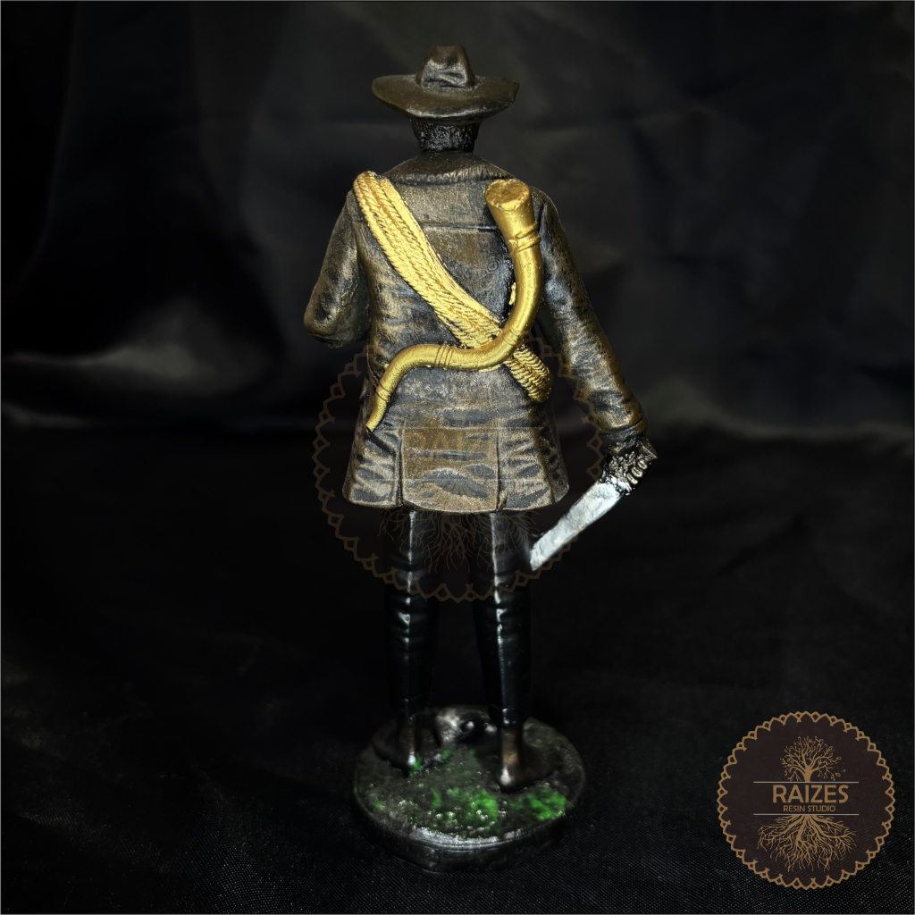 Estátua/Escultura Imagem Miniatura Boiadeiro com Facão Metalizado Resina