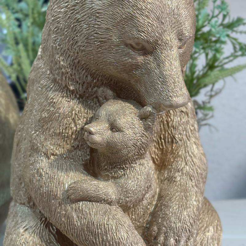 Estatua Escultura URSO com Filhote Mãe e Filho | Peça Decoração Amor Proteção União Familia Abraço