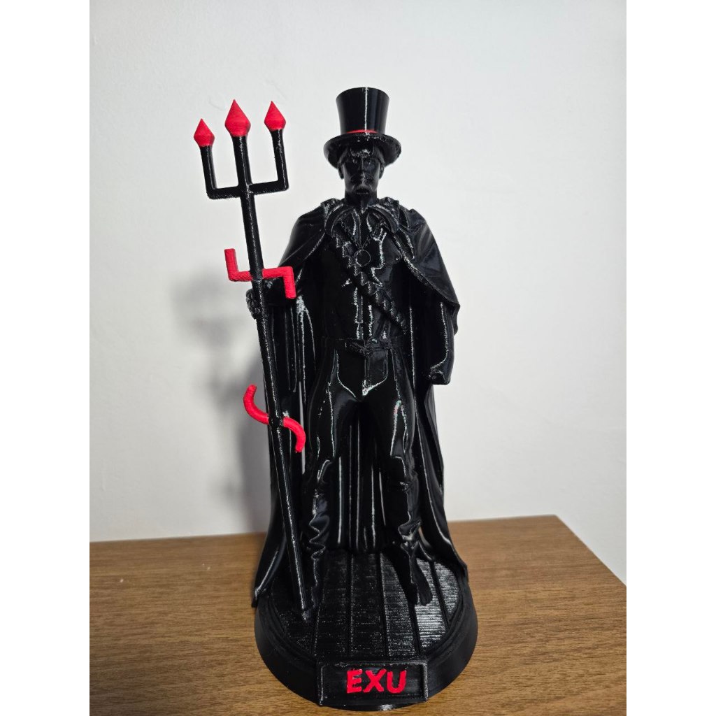 Leve a força e a proteção do Guardião Exu para o seu altar! Esta peça exclusiva é fabricada com tecnologia de impressão 3D de alta precisão, garantindo detalhes ricos que as imagens de gesso convencionais não alcançam. Com um acabamento impecável em preto brilhante e detalhes em vermelho vibrante no tridente, é a peça ideal para quem busca qualidade e durabilidade. Destaques do Produto: Material: Plástico Premium (PLA/PETG). Design Exclusivo: Capa fluida, cartola clássica e tridente detalhado. Acabamento: Cor preta com detalhes em vermelho, pronto para ser consagrado ou usado como decoração. Base Estável: Inclui o nome "EXU" em destaque na base para maior imponência. *Escolha entre os dois tamanhos 24cm ou 15cm*