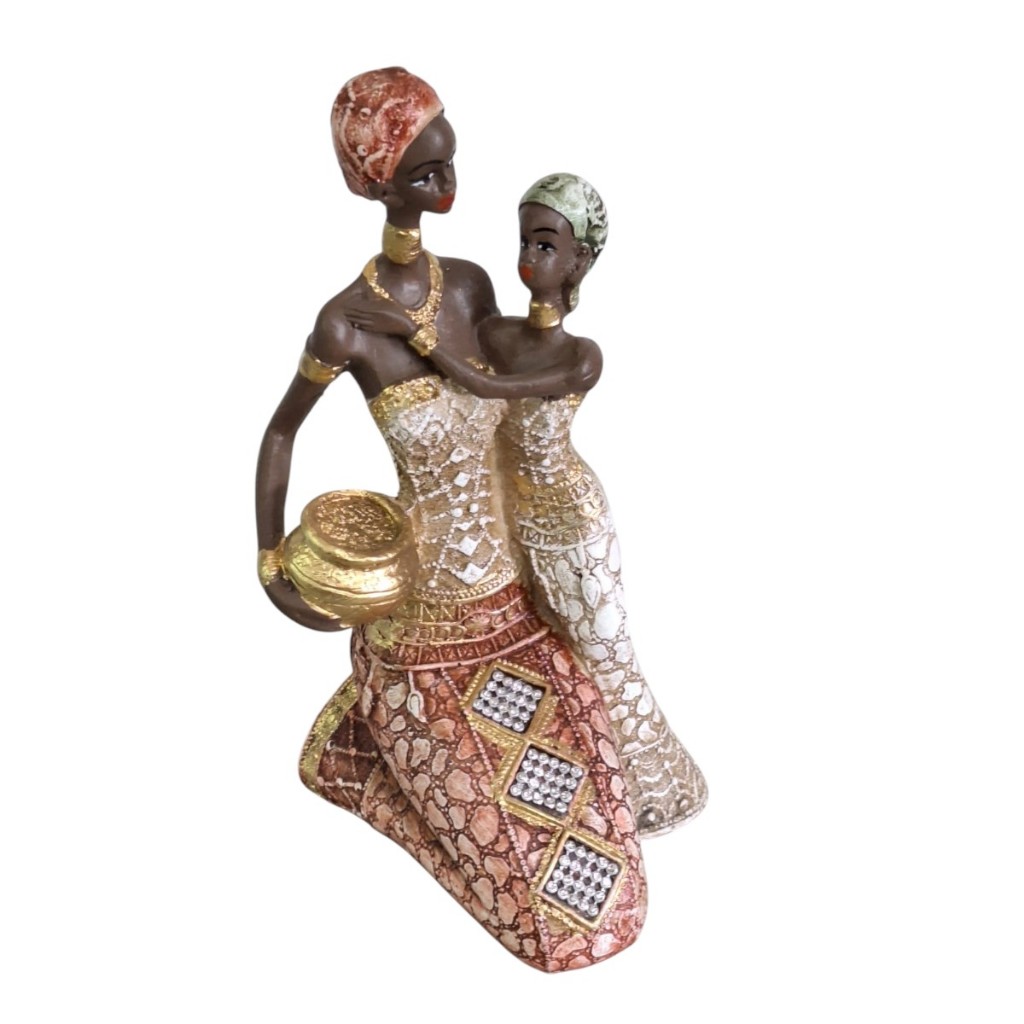 Arte Étnica e Sofisticação Celebre a beleza, a força e a ancestralidade com esta elegante estatueta de mulher africana feita em gesso, rica em detalhes e expressão cultural. Com traços marcantes, vestimentas típicas e postura imponente, a peça representa a essência da mulher africana, símbolo de sabedoria, coragem e conexão com suas raízes. Ideal para compor ambientes com estilo étnico, boho ou contemporâneo, esta estatueta traz sofisticação e significado ao seu espaço, seja na sala, escritório ou hall de entrada. Material: Gesso de alta qualidade Acabamento: Pintura artesanal (cores podem variar) Altura aproximada: 25CM Peso aproximado:700g Indicação de uso: Decoração de interiores Transforme seu ambiente com arte e identidade. Uma peça única que homenageia a cultura africana e encanta pela sua beleza atemporal.