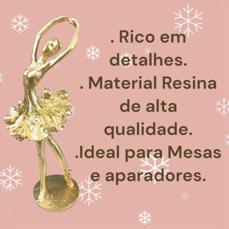 | Estatueta Estátua Escultura enfeite Bailarina dourada em resina com... este produto | R$ 56,50 | 4% | 4.9/5 | — |