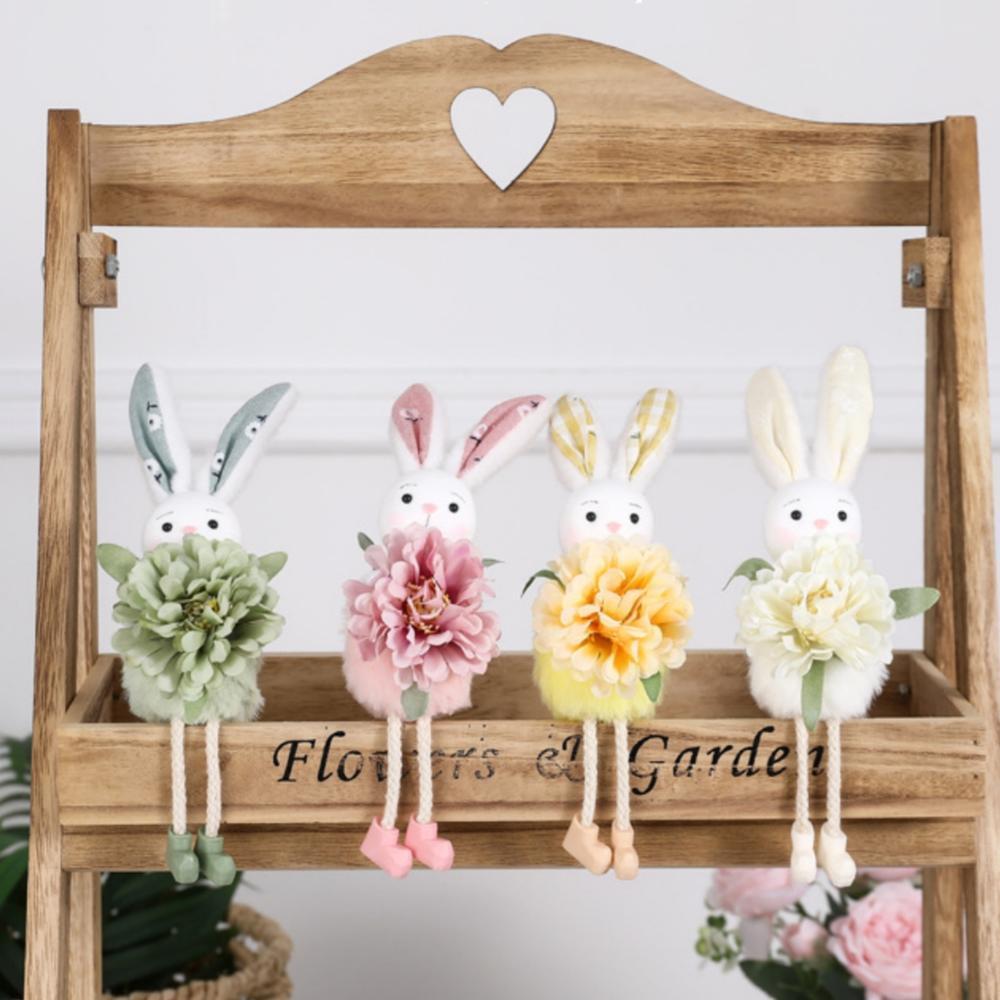 Estatueta Festiva De Coelhinho Da Páscoa Ornamento Colorido De Coelho De Enfeites De Flores Vibrantes De Poliéster Para