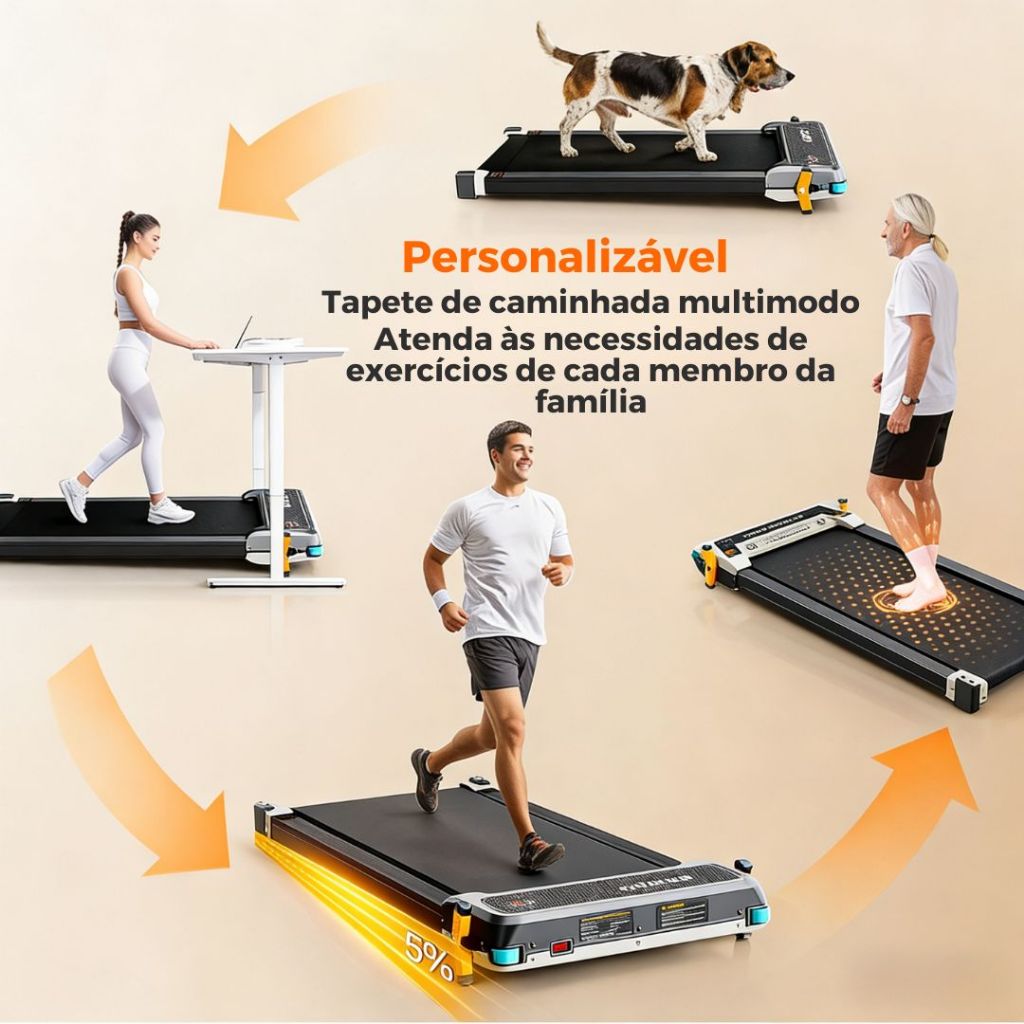 Esteira Dupla 2 em 1 - Massagem e Caminhada para o Seu Bem-Estar Diário 1. Descrição do Produto Apresentamos a revolucionária Esteira Dupla 2 em 1, uma solução completa de saúde para o seu lar. Muito mais que uma simples esteira, ela combina uma esteira de caminhada silenciosa com uma base massageadora para os pés em um único equipamento elegante e compacto. Perfeita para se exercitar, aliviar o cansaço do dia a dia ou relaxar enquanto assiste TV, é o centro de bem-estar versátil que toda família precisa. 2. Vantagens do Produto ▪ Dois Produtos em Um: Economize espaço e dinheiro com um equipamento que oferece caminhada/corrida leve e massagem relaxante para os pés. ▪ Alívio para Todo o Corpo: O rolo massageador alivia a tensão muscular e promove a circulação, perfeito para usar após o exercício ou em um dia estressante. ▪ Proteção Articular Total: Sistema de amortecimento multiponto e correia antiderrapante protegem joelhos e tornozelos, tornando o exercício seguro e confortável. ▪ Uso Personalizado para a Família: Com diferentes modos (caminhada, corrida, massagem) e design reversível, atende desde quem busca fitness até quem precisa de relaxamento. 3. Características do Produto ★ Modo Duplo com Design Reversível: Basta virar a plataforma para alternar entre a superfície de caminhada e a de massagem. ★ Tela Dupla Inteligente: Dois painéis mostram separadamente as configurações da esteira (velocidade, tempo, distância) e do modo massageador. ★ Controle Duplo: Opere facilmente tanto pelos botões no painel quanto pelo controle remoto incluso. ★ Motor Poderoso e Silencioso: Motor de 2.5HP proporciona desempenho suave e silencioso, ideal para apartamentos. ★ Estrutura Robusta: Suporta com segurança até 120kg e possui construção reforçada para máxima durabilidade. 4. Especificações do Produto • Modelo: 520F-A (Esteira Dupla 2 em 1) • Dimensões (LxAxP): 1105 x 545 x 130 mm • Área de Caminhada/Massagem: 900 x 400 mm • Velocidade: 1 – 6 km/h (ajustável) • Potência do Motor (Pico): 2.5 HP • Capacidade Máxima de Peso: 120 kg • Tensão: 110V ou 220V (conforme especificado ao comprar) • Peso Líquido: 19.2 kg | Peso Bruto: 21.8 kg 5. Conteúdo da Embalagem ➤ 1 x Esteira Dupla 2 em 1 (520F-A) ➤ 1 x Controlador Remoto ➤ 1 x Bateria para Controle Remoto ➤ 1 x Óleo Lubrificante para Manutenção ➤ 2 x Suportes de Montagem ➤ 1 x Ferramenta Hexagonal ➤ 2 x Parafusos M8x30 ➤ 2 x Gaxetas Simples ➤ 1 x Manual do Usuário 6. Atenção ▪ Escolha o modelo correto conforme a tensão da sua residência (110V ou 220V). ▪ Utilize o equipamento em superfície plana e estável, longe de umidade. ▪ Para maior durabilidade, lubrifique a correia periodicamente com o óleo fornecido, seguindo o manual. ▪ Use tênis apropriados no modo de caminhada/corrida. ▪ Inicie sempre em baixa velocidade para se adaptar ao equipamento. ▪ Guarde em local seco após o uso.