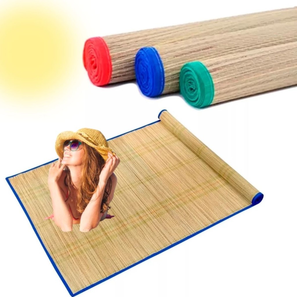 Esteira De Praia Palha Camping Piquenique Dobrável Tapete Piscina