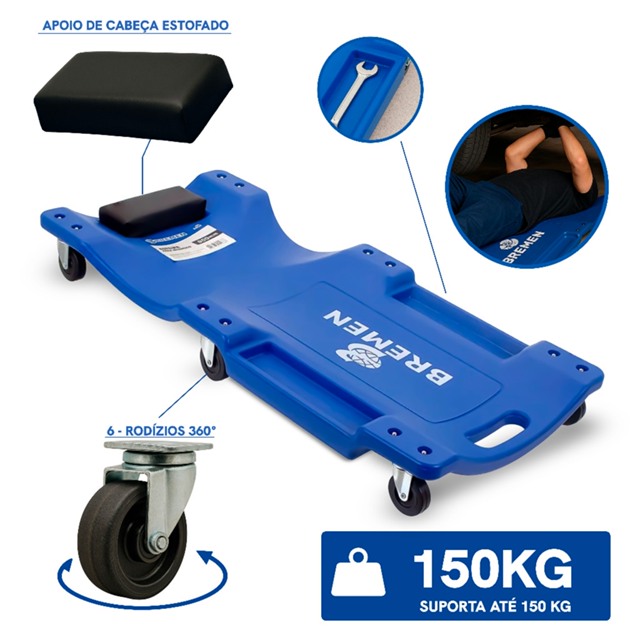 | Esteira para Mecânico 150 kg Azul • C/ Encosto para Cabeça e Porta-... este produto | R$ 169,90 | 32% | 4.9/5 | 8 |