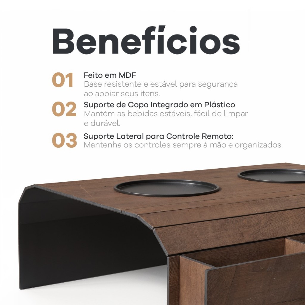 Esteira Suporte Porta Copos e Controle Para Braço de Sofá Sala Apoio Bandeja Madeira MDF Treco Apoio