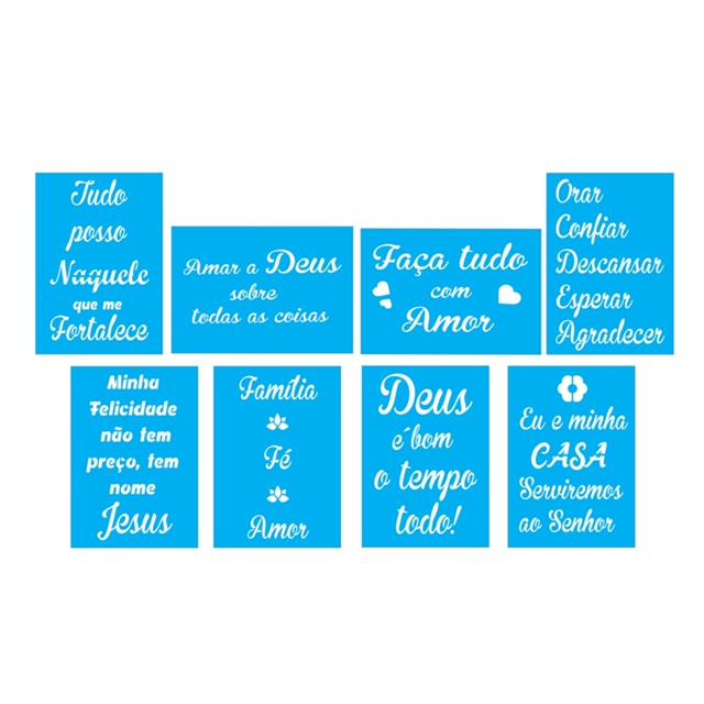Estêncil 8 Peças para Pintura Frases - Tamanho 20x14 cm - Molde Vazado