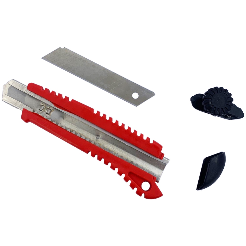 Características: Estilete Acabamento: metálico com cabo plástico Acompanha 1 lâmina Tamanho: Grande - 18mm Peças por Embalagem: Unitário Código: 221,0002 EAN: 7899561508048 .