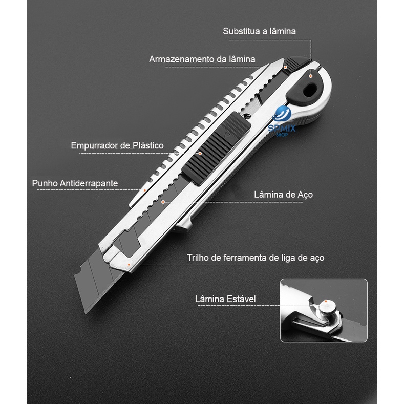 Estilete De Metal Profissional 18mm + 5 Lâminas Extras