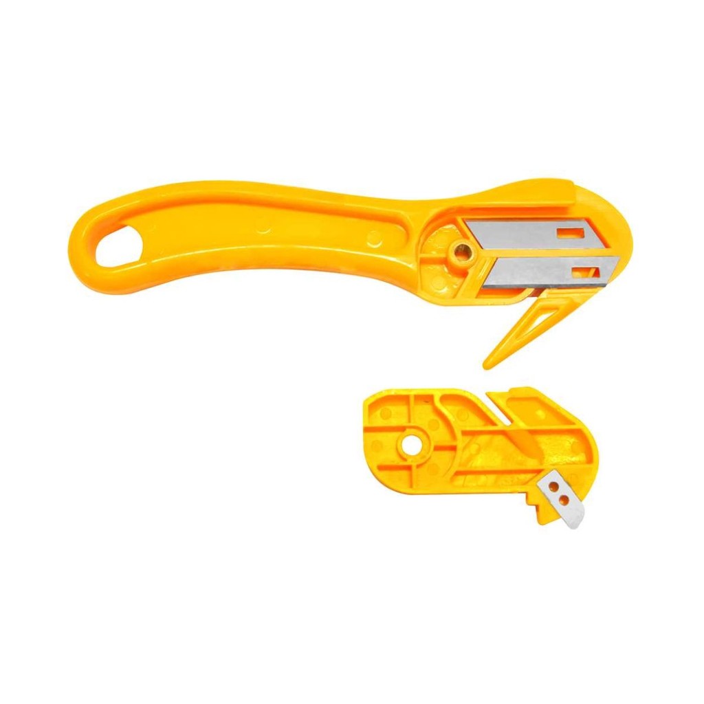 Indicado para cortar filmes stretch, fitilhos, cintas de plástico, abrir caixas de papelão e sacarias em geral. Lâmina para reposição - 35.99.009.010. Possui lâmina cortante coberta com um bico guia, evitando cortes indesejados ou acidentes, além de lâmina curta não cortante, que facilita a abertura de caixas de papelão. Conteúdo da Embalagem: 1 Estilete. Acompanha: 2 lâminas cortantes, (1 pronta para uso e 1 sobressalente armazenada internamente) e 1 lâmina curta não cortante. Detalhes técnicos: Material do corpo do estilete: Plástico Comprimento total do estilete: 150 mm Tipo da lâmina: Reta Largura da lâmina: 9,0 mm Massa aproximada (peso): 0,044 kg