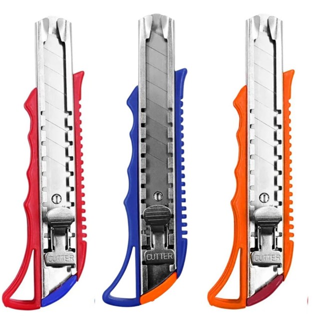 ESTILETE LARGO EM METAL LAMINA 18MM CORES PARA ESCRITORIO EMPRESA - LEONORA