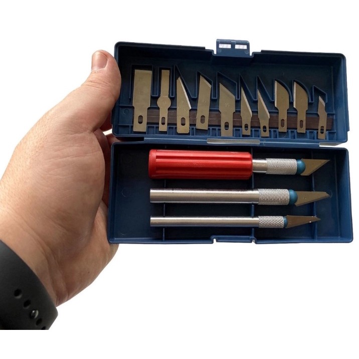 Somos a Mobitex, empresa especializada em inovações para o setor têxtil. Todos os nossos produtos possuem 1 ANO DE GARANTIA, sinal de confiança e qualidade. Este produto acompanha: Acompanha 1 estojo plástico para armazenamento - Contém 13 Lâminas - Suporte para lâminas com magnetismo, evita que as lâminas se desloquem - Utilizado para entalhe e corte de materiais delicados, para trabalhos de precisão, seja escultura, ajustes, artesãos, modelistas, macheteiros ou onde for necessário