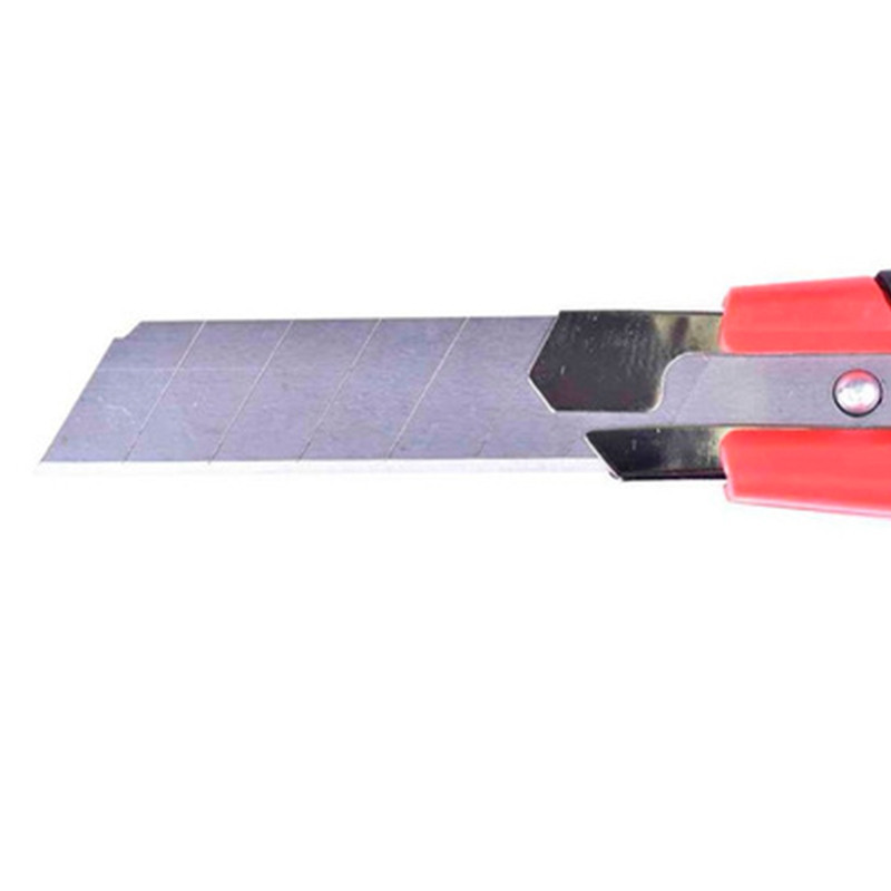 Estilete Profissional 18mm MTX - 789149 O Estilete com corpo de plástico, revestimento de borracha e guia de metal possui lâmina retrátil de 18mm. Indicado para cortar papel, papelão e outros materiais. A substituição da lâmina é feita de forma manual pela parte traseira do estilete. Características Para uso profissional Corpo de metal Botão de trava e destrava para lâminas Para aumentar a segurança ao cortar cordas e cordéis Medida da lâmina: 18mm Imagens Meramente Ilustrativas