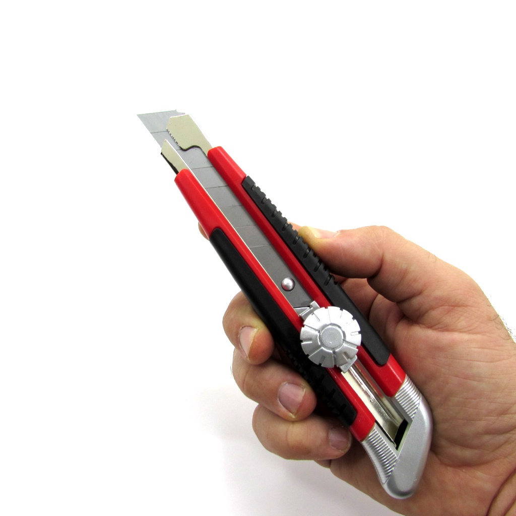 Estilete de ótima qualidade para uso profissional com guia de metal revestido com plástico e borracha termoplástica com lâmina retrátil de 18mm. Indicado para cortar papel, papelão, plástico e outros materiais. Possui estojo com 10 laminas de 18mm de reserva. Conteúdo: 1 - Estilete Retrátil 18mm C/ Ponta de Metal e Estojo c/ 10 Laminas Reserva Características - Para uso profissional - Corpo de metal - Botão de trava e destrava para lâminas - Para aumentar a segurança ao cortar cordas e cordéis - Medida da lâmina: 18mm - Marca: MTX - Modelo: 789149