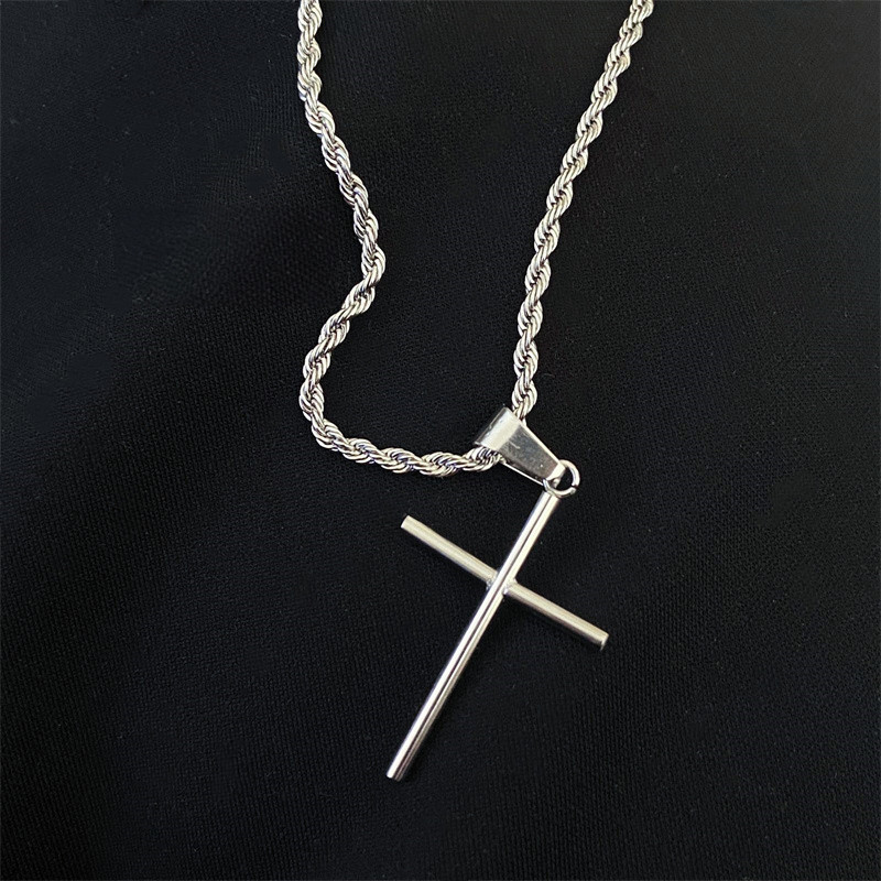 Estilo Unissex: Corrente e Pulseira Torcida com Pingente de Cruz Banhados a Prata