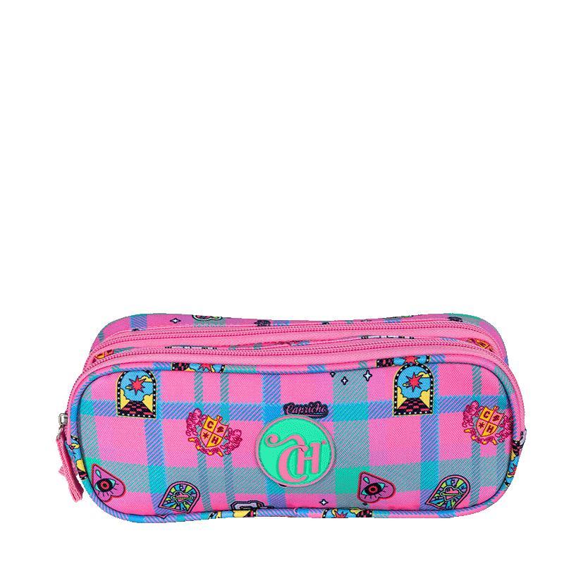 Estojo 2 Compartimentos Capricho Student School - Rosa Claro