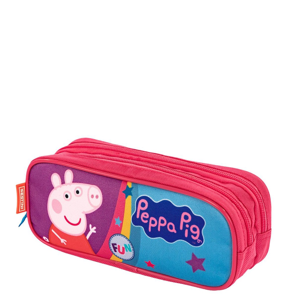 Este Estojo 2 Compartimentos conta com as aventuras da porquinha mais amada das telinhas! Produzido em um resistente poliéster, a estampa Peppa Pig traz elementos divertidos para te acompanhar na sala de aula. *Produto SESTINI certificado pelo INMETRO Registro 003403/2018 - OCP - 0061.* Possui a Altura: 9 Cm - Largura: 22 Cm - Profundidade: 7 Cm - Peso: 0,1 KG - Capacidade Total: 1 L