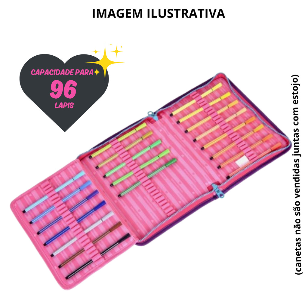 Estojo Infantil 96 Pens Feminino Rebecca Bonbon - Clio Style Despacho Rápido: Pedidos feitos até as 11:00 hrs (SEG a SEX) serão enviados no mesmo dia! DETALHES E FUNCIONALIDADES: ESTOJO: • Design Único com 01 Bolso • Confecionado em material soft prensado com formato de flores. MATERIAIS DE PRIMEIRA QUALIDADE: Este Estojo é meticulosamente confeccionado com nylon e poliéster, incorporando sutis detalhes em tecido impermeável. Os acabamentos incluem um toque de luxo com acolchoamento e zíper de alta qualidade. PRODUTO AUTÊNTICO DA MARCA CLIO STYLO LINHA: REBECCA BONBON
