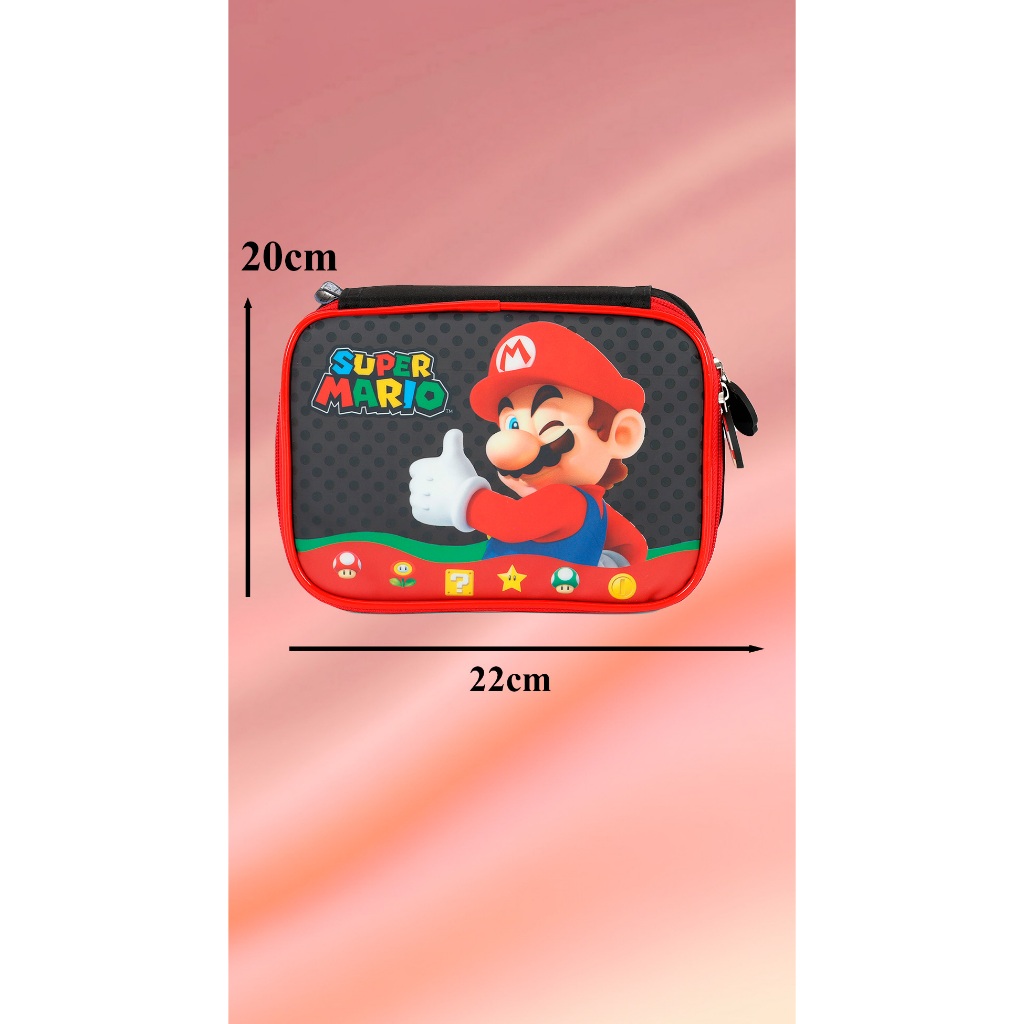Leve a magia do universo Nintendo para a escola com este incrível Estojo Escolar Super Mario Bros! Produzido com material resistente e acabamento de qualidade, ele é perfeito para organizar até 36 lápis, canetas e acessórios escolares de forma prática e segura. Com design vibrante e licenciado, traz os personagens mais amados do Super Mario Bros, conquistando fãs de todas as idades. Ideal para acompanhar a rotina escolar, cursos ou até para uso pessoal, unindo funcionalidade e estilo em um só produto. Produto oficial licenciado Descrição: Tecido 100% poliéster de alta resistência e impermeável; Logos em Silk Screen; Puxador; Capacidade: 2,2 L / Peso: 60 Gramas / Dimensões: A 22 X L 20 X P 10 CM