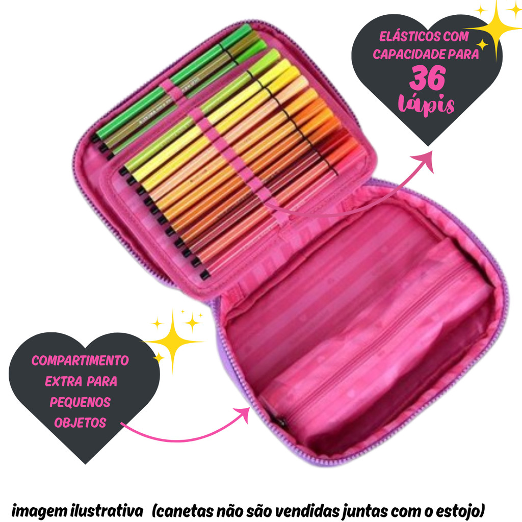ESTOJO INFANTIL FEMININO REBECCA BONBON - CLIO STYLO Despacho Rápido: Pedidos feitos até as 11:00 hrs (SEG a SEX) serão enviados no mesmo dia! DETALHES E FUNCIONALIDADES: Estojo: Tamanho 22x16x6cm Confecionado em material soft prensado Elasticos para 36 lapis e 1 Bolso interno extra para objetos pequenos Ideal para publico infantil e Juvenil. Apresentando a coleção 2026, Rebecca Bonbon retorna com as principais tendências de moda. Aclamada entre as fashionistas, a famosa Bulldog francesa inspira novas linhas com diversas aplicações e acessórios, reafirmando a combinação de sucesso entre moda e o período de Volta às Aulas. PRODUTO AUTÊNTICO DA MARCA LINHA: REBECCA BONBON