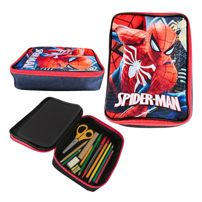 Estojo Box Homem Aranha Que tal organizar os materiais de forma divertida e prática? O nosso estojo box escolar é perfeito para os pequenos! Feito em tecido de alta qualidade e com acabamento impecável, ele vai deixar os estudos ainda mais animados. Cores Vivas, Excelente qualidade e acabamento. Com elásticos individuais para até 24 lápis (dependendo da espessura), ele tem capacidade total para até 100 lápis ou canetas! E o melhor de tudo: a variedade de personagens que os pequenos adoram, deixando o momento de estudar mais colorido e divertido. Medidas: 25x18x8 cm