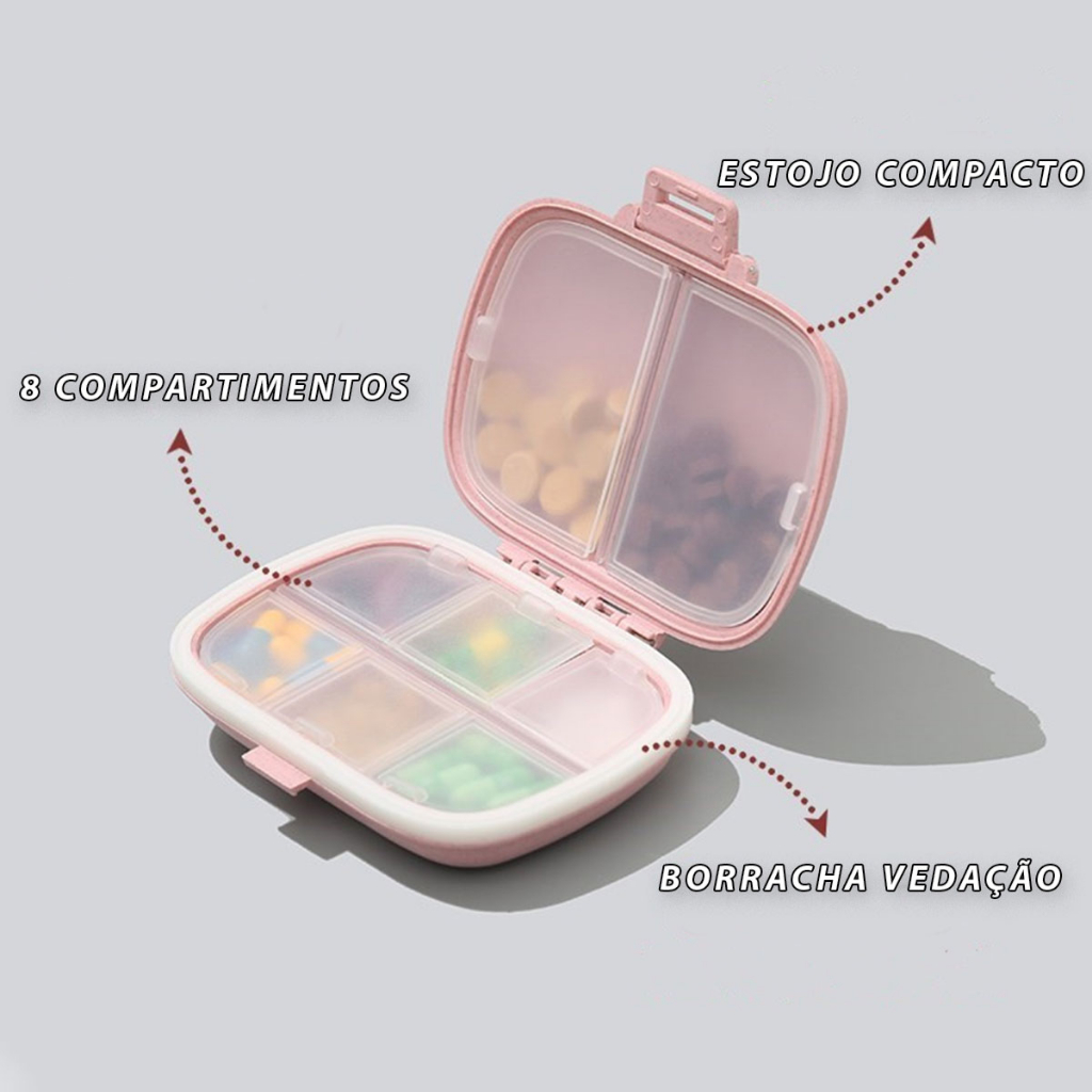 PORTA COMPRIMIDOS PORTÁTIL DE BOLSA - Ideal para organizar a quantidade de cápsulas diárias - Tamanho compacto cabe na bolsa, mochila - Possui 8 divisórias - Axilia as pessoas que costumam esquecer de tomar medicamento/suplemento - Ótimo para levar na viagem ocupando menos espaço na bagagem - Muito pratico no uso diário *** PERGUNTAS FREQUENTES *** P: Quantas cápsulas cabem em cada compartimento? R: Em média 3-5 comprimidos (Depende do tamanho da cápsula/comprimido) P: É possível remover os nichos por semana ou indiviudal? R: Não, os compartimentos são fixos P: Para quantos dias serve este porta comprimidos? R: Possui 8 divisórias, dependendo do objetivo pode ser usado por semana ou diário vai depender de quantas cápsulas deseja programar P: Os compartimentos são fáceis de abrir? R: Sim, é um sistema de "portinhas-tampas" que não exigem muito esforço para abrir e fechar P: Emitem nota fiscal? R: Sim enviamos com nota fiscal P: Tem à pronta entrega? R: Sim, despachamos em até 24hs úteis Recomenda-se lavar com detergente neutro, não utilize produtos abrasivos esponja de aço etc pois pode danificar/arranhar o plástico Material: Plástico Medidas: Largura: 11cm Comprimento: 8cm ** Produto à pronta entrega ** Despachamos em até 24hs úteis após confirmação do pagamento