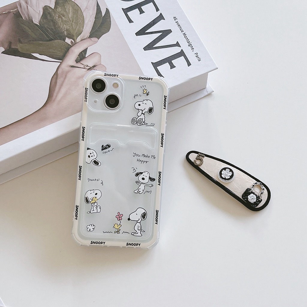 Estojo De Armazenamento De Fotos Telefone Macio Para IPhone 11 14 15 13 12 Pro Max XR Porta-Cartões Snoopy Estilo Bolso