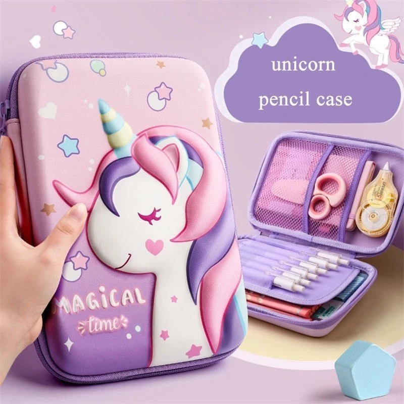 Estojo De Lápis De EVA Box Infantil Com Desenho De Unicórnio 3D/Caixa Multifuncional De Grande Capacidade Escolar
