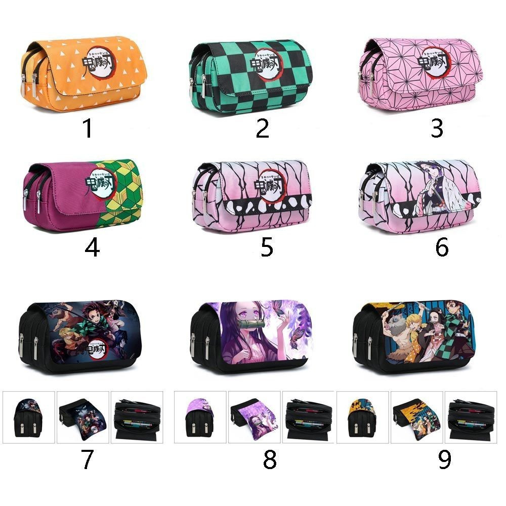 Estojo de Lápis de Grande Capacidade com Camada Dupla Demon Slayer Bolsa de Lona com Zíper Suprimentos para Escritório e
