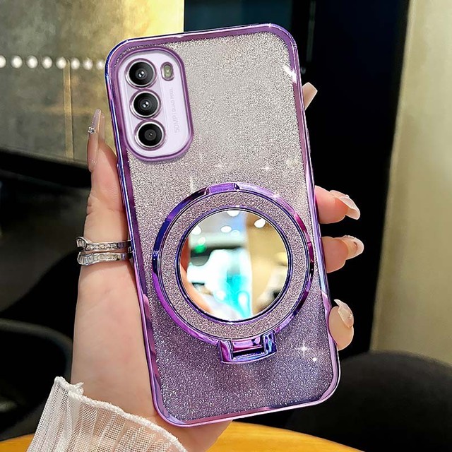 Estojo De Luxo Para Telefone Em Pó Flash Moto Motorola G22 G32 G42 G52 G72 G82 G31 G71S Macio De Alta Qualidade Com Suporte De Espelho Circular
