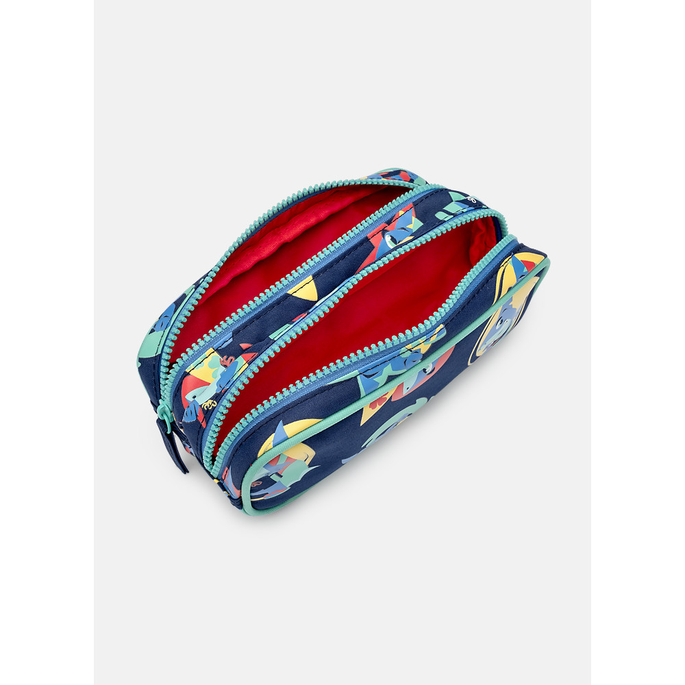 Estojo pequeno duplo TubarãoO estojo duplo possui 2 compartimentos, o que é ótimo para o armazenamento dos seus itens. É em estampa corrida. Medidas: 21,5 cm x 9 cm x 8 cm (LxAxP)