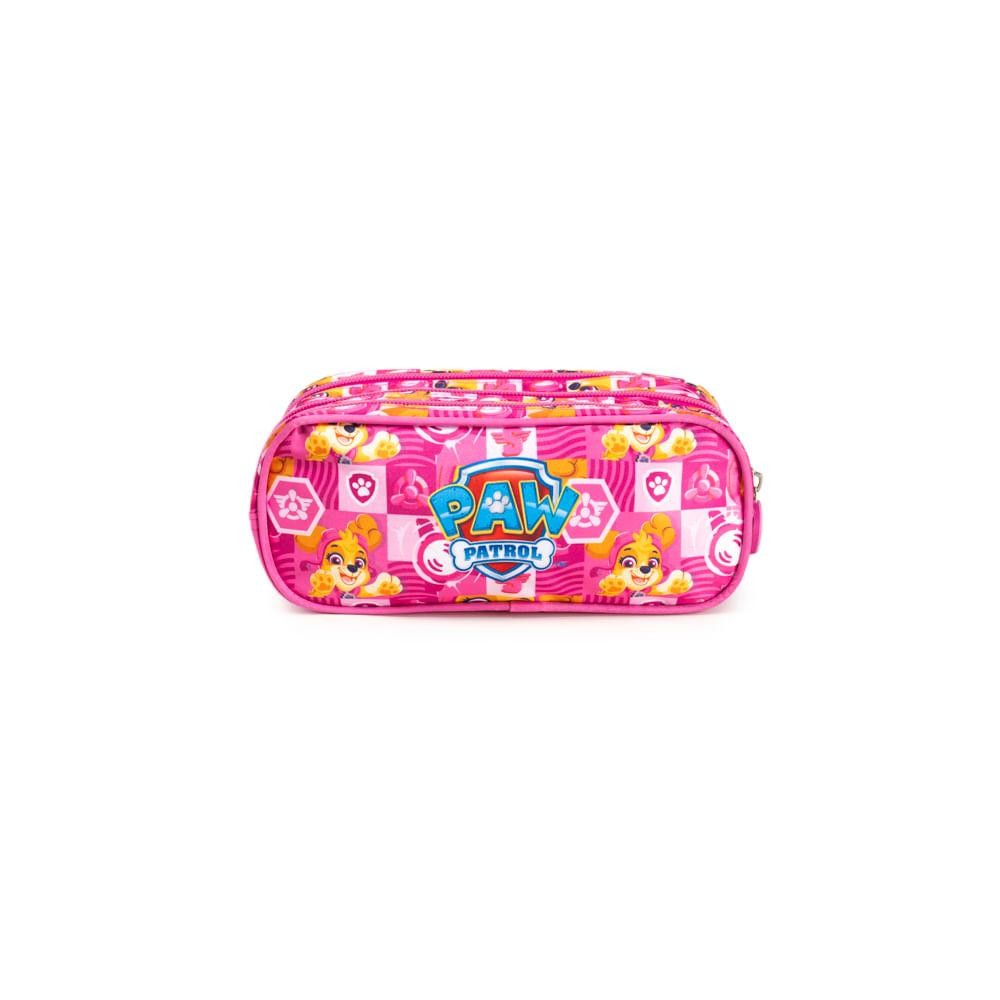 Estojo Escolar Feminino Médio Patrulha Canina Skye 3 Compartimentos Rosa