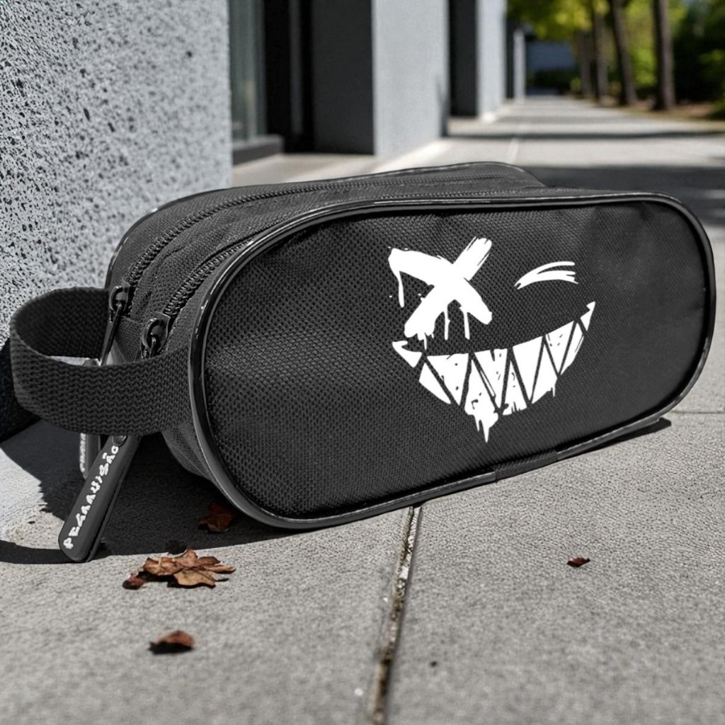 Estojo Escolar Lápis Caneta Porta Acessórios Duplo 2 Zíperes Alça Lateral Necessaire Carinha PV