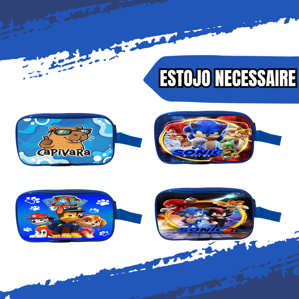 Estojo Escolar Necessaire Duplo Sonic Carros Mickey Capitão América Patrulha Roblox Capivara