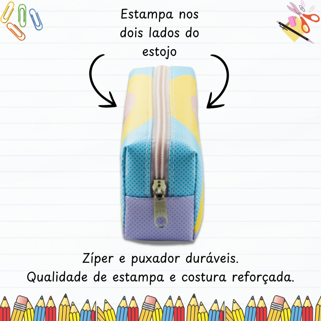 -------------------------------------------------------------------------------- Não precisa mais procurar!!! Você acabou de encontrar o estojo perfeito para a sua filha! ATENÇÃO: Comprando até às 12:00, postaremos no mesmo dia. Emitimos NOTA FISCAL em todas as vendas. ------------------------------------------------------------------------------- Nosso estojo escolar certificado pelo Inmetro é a escolha ideal para sua filha! Com uma estampa durável e cores vibrantes, zíper e puxador resistentes, design moderno e material impermeável, ele oferece qualidade premium para o dia a dia escolar. Além disso, é espaçoso o suficiente para todos os materiais, mas compacto para caber facilmente na mochila. Proporcione a sua filha segurança e estilo na escola com nosso estojo escolar de alta qualidade. Com o nosso estojo, sua filha estará preparado para enfrentar qualquer desafio escolar com confiança, enquanto você tem a tranquilidade de saber que escolheu um produto que atende aos mais altos padrões de qualidade e segurança. -------------------------------------------- Características do produto: -------------------------------------------- >> Certificação de segurança Inmetro REGISTRO NÚMERO: 003122/2022; >> Embalagem individual da marca; >> Zíper e puxador resistentes; >> Design moderno seguindo tendências; >> Confeccionado em material durável com estampa resistente; >> Acabamento e costura seguindo altos padrões de qualidade; >> Apesar de bem espaçoso é fácil de guardar. ------------------- Cuidados: ------------------- > Guarde em um local seco e arejado; > Evite colocar excesso de volume para não forçar os zíperes e costuras; > Evite o contato direto de objetos cortantes ou pontiagudos com o produto. ------------------- Limpeza: ------------------- > Para a limpeza utilize pano úmido com sabão neutro. > Não utilizar componentes químicos, solventes ou alvejantes. > Não deixar de molho e secar a sombra. ------------------- Ficha Técnica: ------------------- - Marca: Look Estojos e Bolsas - Modelo: Estojo 1 Zíper - Material: Sintético / Nylon - Medidas: 20 x 4.5 x 6 cm ------------------------------- O que vem na embalagem: ------------------------------- 1 unidade do estojo. ------------------------------- Institucional: De forma profissional e ágil, procuramos levar aos nossos clientes o que há de melhor respeitando, claro, a autenticidade e a originalidade dos produtos que trabalhamos. Em resumo, buscamos não somente atender as suas necessidades, mas também superar as suas expectativas lhe proporcionando uma experiência de compra única. GARANTIA Enviamos os produtos bem embalados. Todos os produtos tem garantia de troca/devolução dentro de 7 dias após o recebimento, e a garantia do fabricante são de 90 dias após o receber o produto. SEGURANÇA Se não receber seu pedido, garantimos a devolução do seu pagamento. Agradecemos pela sua atenção em nosso anúncio.