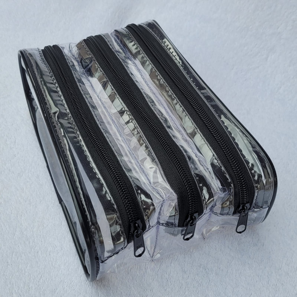 ESTOJO ESCOLAR3 PARA LÁPIS TRANSPARENTE COM VIVO PRETO CONTENDO 3 REPARTIÇÕES