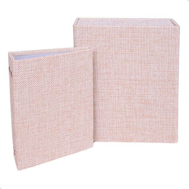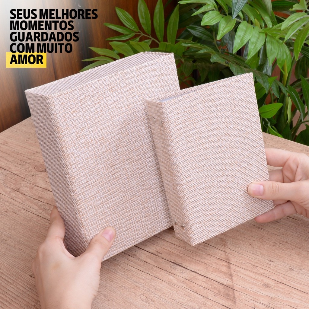 Estojo Imantado com Álbum p/ 120 fotos 10x15 JUTA BEGE Tecido Caixa Família Casal