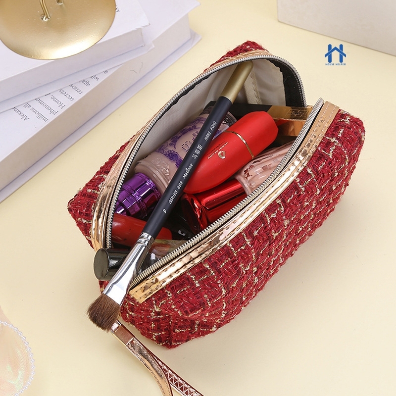 Estojo Necessaire Bolsa de Maquiagem Tweed com Alça – Compacta e Versátil Para Viagem ou Dia a Dia