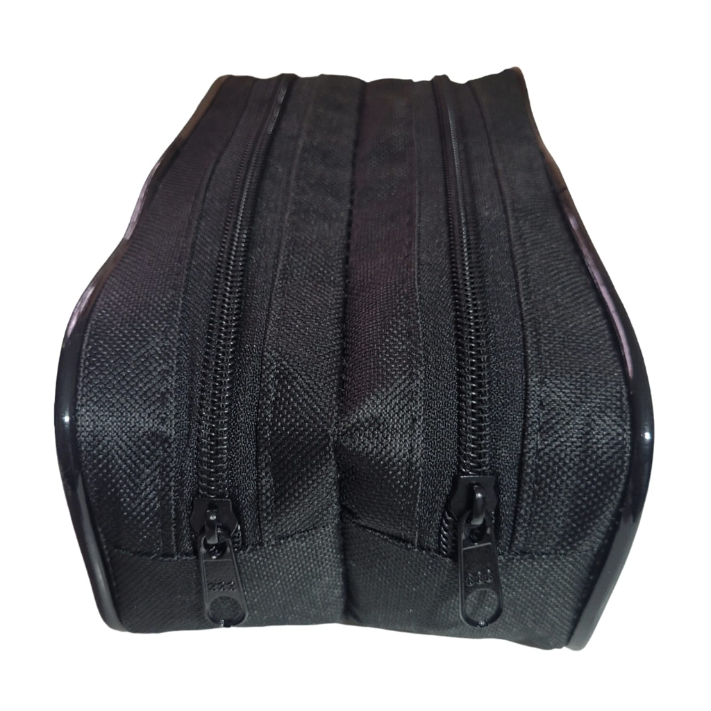 ESTOJO PARA LÁPIS ESCOLAR CONTENDO 2 REPARTIÇÕES PRETO COM FRISO